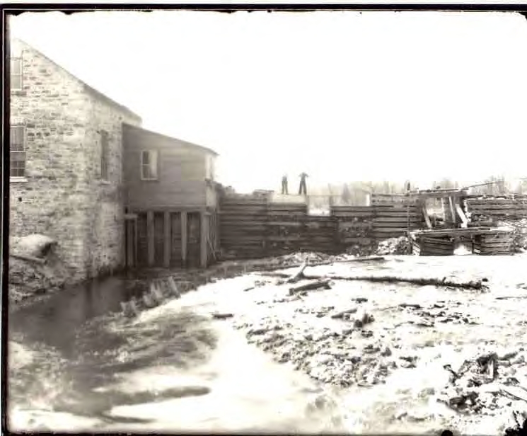 John Chaffey owned the property between 1867 and 1878 (possibly as late as 1891), when his estate sold it to James Laurie and Peter McLaren. Laurie operated it until his death and in 1892 his estate sold to Louis Badour. Badour apparently owned it for only a short time, cut the oak and pine in the area, and in 1896 sold the four-acre mill lot (of Lot 17, Concession 1), with water rights, to the Canadian Electric & Water Power Co. The power company converted the old grist mill to a hydro generating plant, rebuilt the dam and installed a 250 H.P. 50” water wheel, to supply Perth with electricity, in 1898 (one of four mills along the Tay to do so, including the Adams, Ritchie and Haggart mills).